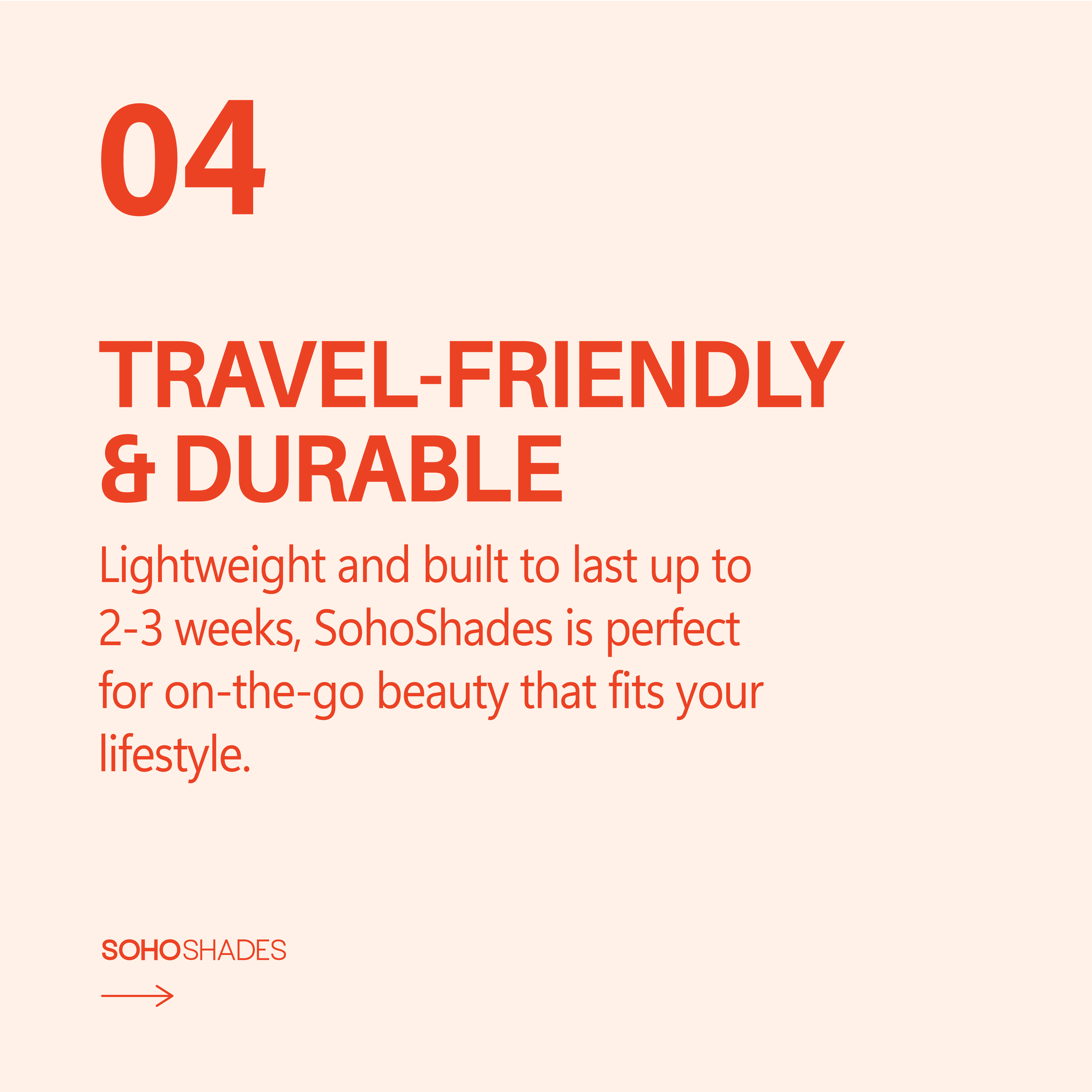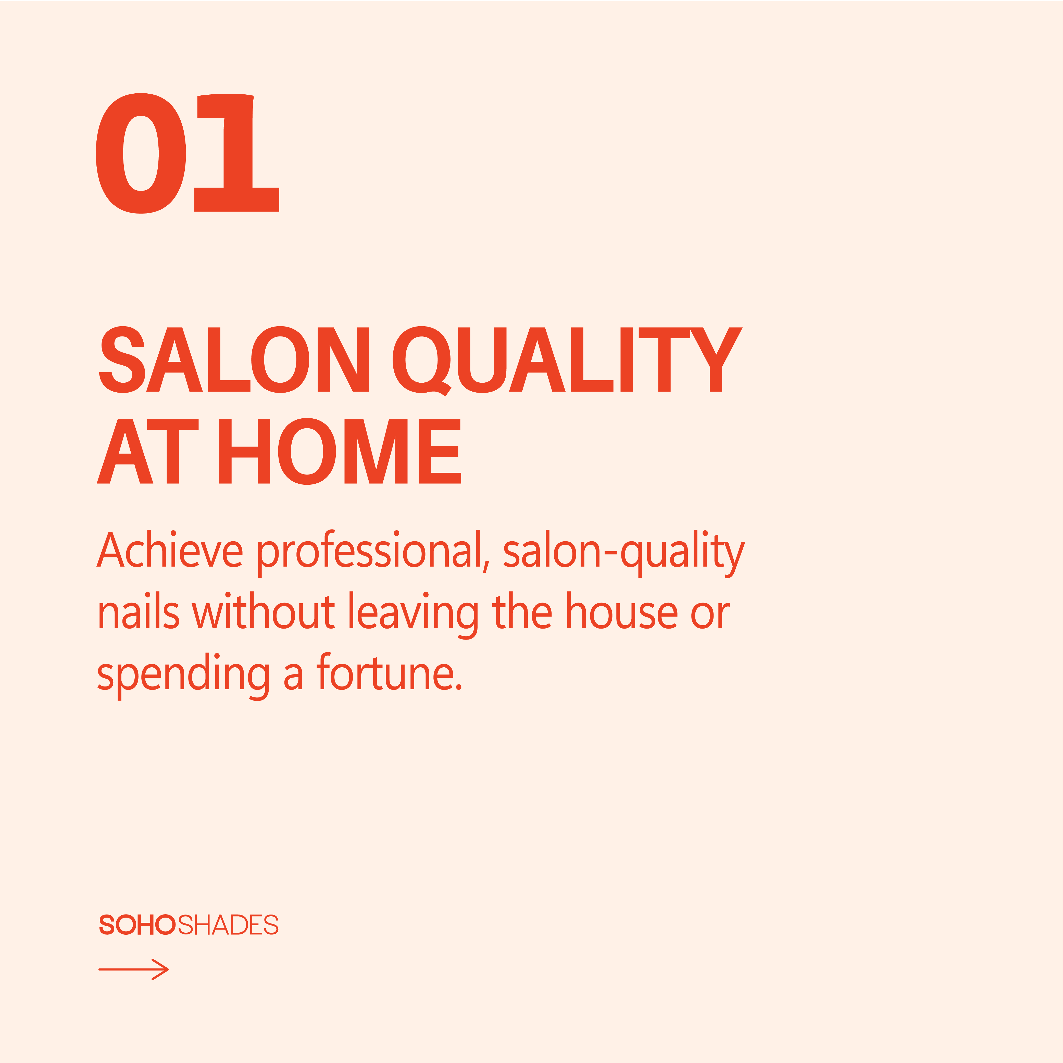 1. Instant Glam, Anytime, Anywhere. No more need to go to salons, nor waiting in a queue. SohoShades Press-Ons guarantees salon-quality manicures in minutes from the comfort of your home.