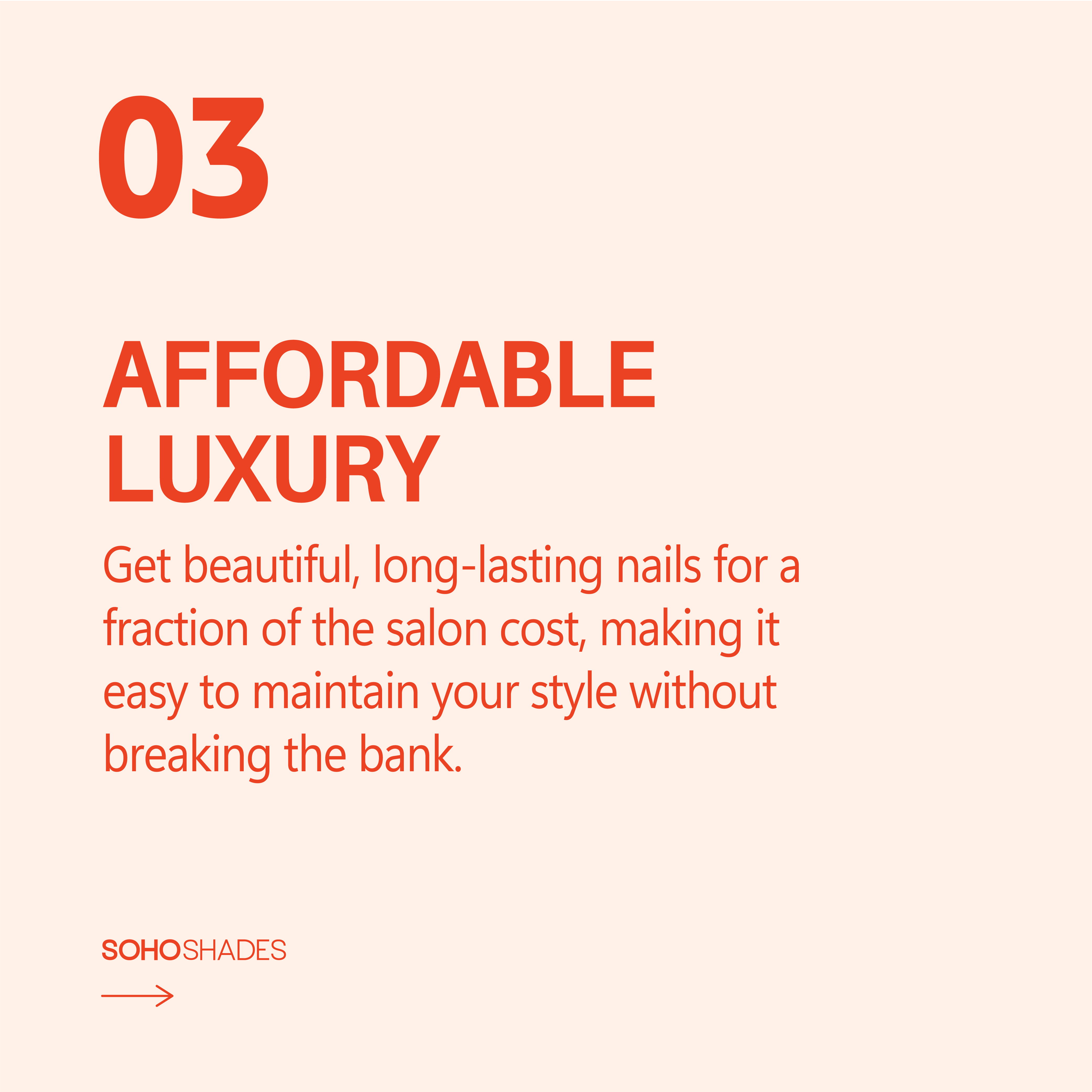 6. Affordable Luxury: Salon-quality nails for salon price tags. SohoShades premium quality for affordable prices makes it easy to upgrade, not break it.