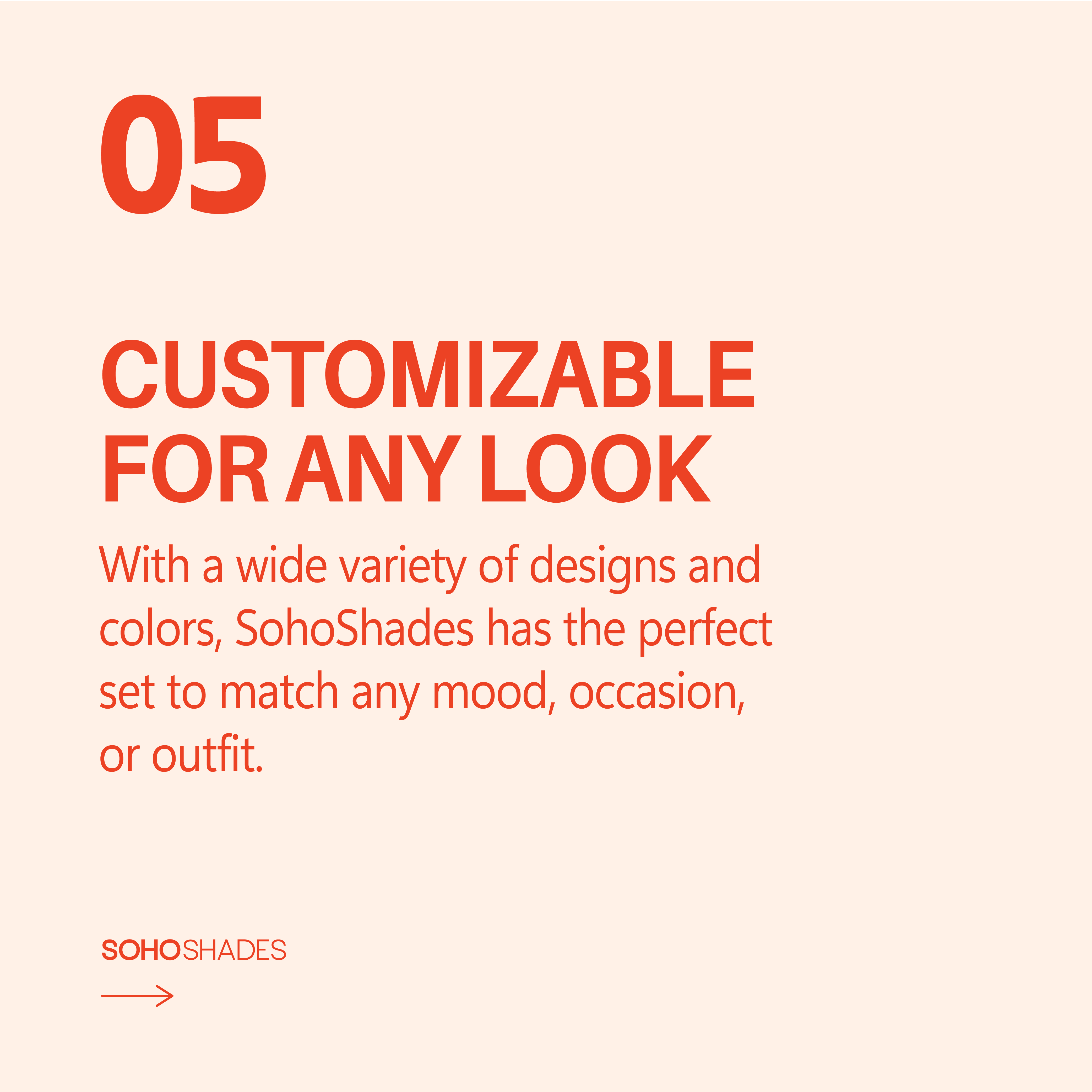 2. Unlimited Styles, Unlimited Possibilities: SohoShades will be your companion for every taste and occasion from designs to colours and lengths. Bold and edgy or classic and elegant, here's the just-right set to make you shine.